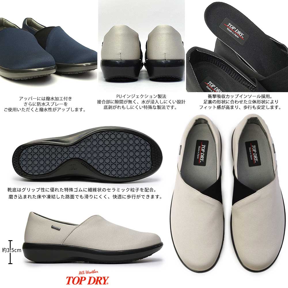 ヒールの高さ : 3.5cmアッパー:合成繊維+ゴアテックス アウトソール:合成底重量 : 片足240g(23.5cm片足で計測の場合)原産国 : 日本TOPDRY 【smtb-TK】 23.5cmだと短く感じるので少し大きいですが24.0cmを選びます。