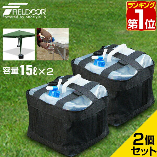 【楽天1位】FIELDOOR 折りたたみ ウォータータンク 2個セット 15リットル 15L 専用バッグ付き 蛇口コック付き テント設営用おもりに アウトドア 折りたたみ式 防災用品 地震 台風 停電 対策 ウォータージャグ ポリタンク 給水タンク 1年保証 ■[送料無料]