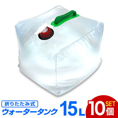 【スーパーSALE限定価格】【10個セット】ウォータータンク 折りたたみ 15リットル 15L 水 タンク ポリタンク 給水タンク 給水袋 貯水タンク コンパクト コック付き テント 重り ウォーターウェイト ウェイト テントウエイト 給水用品 防災グッズ 断水 送料無料