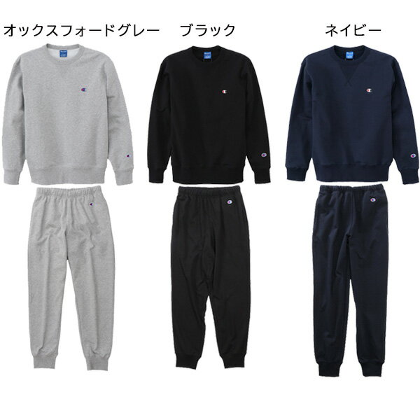 お得な上下セット クルーネックスウェットシャツ 22SS【春夏新作】スポーツ チャンピオン(C3-LS050) コットン×ポリエステル素材で、従来のコットン100%素材より軽量性と形状安定性に優れた生地を使用したクルーネックスウェットシャツです。