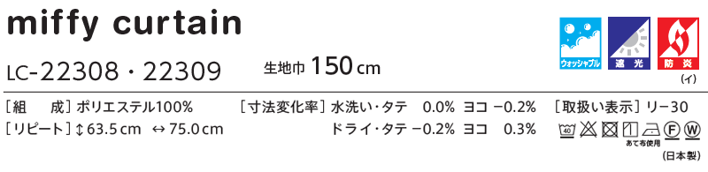 商品名リリカラ コントラクトカーテンオーダーカーテン教育・保育施設遮光miffycurtainLC-22308・22309サイズカーテンを1cm単位でオーダーできます。