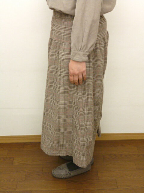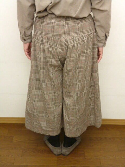 【40%オフ・セール】 サンバレー SUNVALLEY パンツ ガウチョパンツ 切り替え ギャザー 綿 モール糸 起毛 グレンチェック